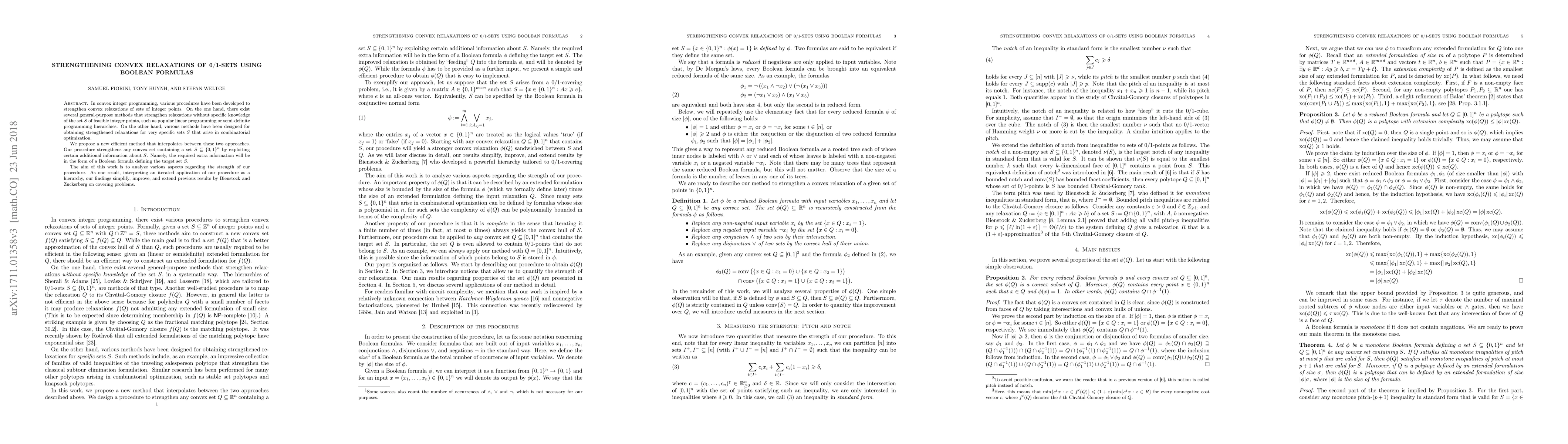 A new method strengthens convex relaxations of 0/1-sets using Boolean formulas, bridging general-purpose methods with specific set-based approaches, and simplifying previous results on covering problems.