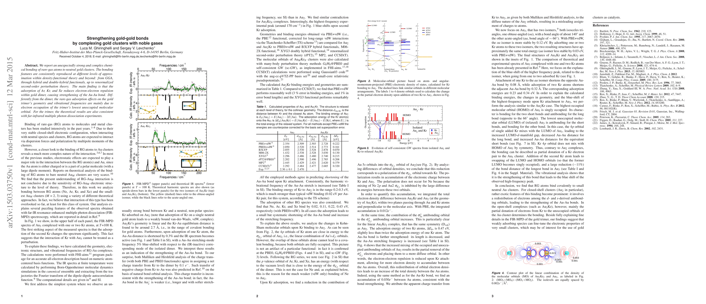 We report an unexpectedly strong and complex chemical bonding of rare-gas atoms to neutral gold clusters. The bonding features are consistently reproduced at different levels of approximation within density-functional theory and beyond: from GGA, through hybrid and double-hybrid functionals, up to renormalized second-order perturbation theory. The main finding is that the adsorption of Ar, Kr, and Xe reduces electron-electron repulsion within gold dimer, causing strengthening of the Au-Au bond. Differently from the dimer, the rare-gas adsorption effects on the gold trimer's geometry and vibrational frequencies are mainly due to electron occupation of the trimer's lowest unoccupied molecular orbital. For the trimer, the theoretical results are also consistent with far-infrared multiple photon dissociation experiments.
