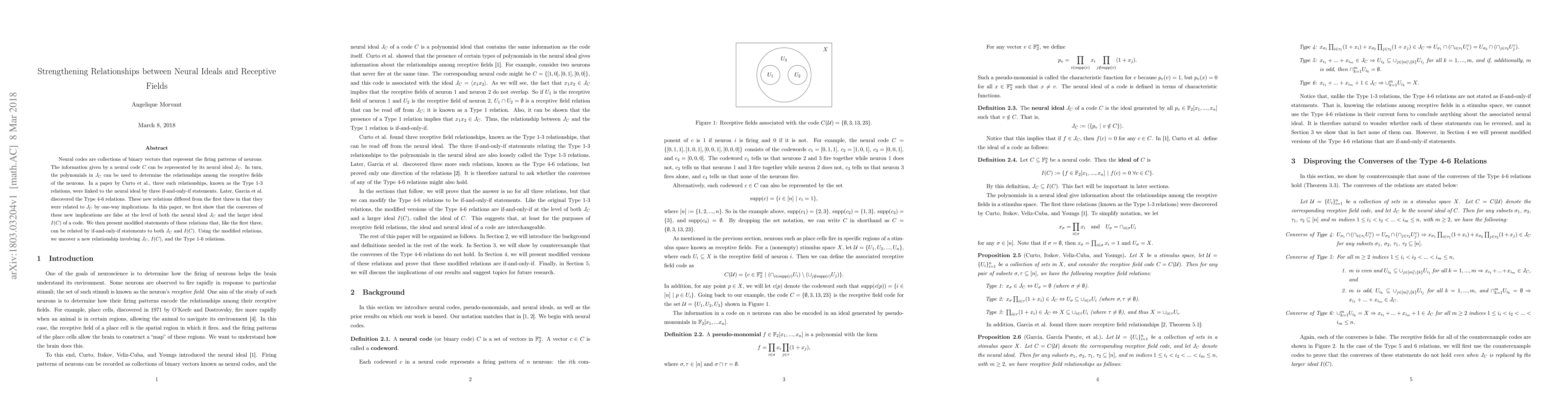 Neural codes are collections of binary vectors that represent the firing patterns of neurons. The information given by a neural code $C$ can be represented by its neural ideal $J_C$. In turn, the polynomials in $J_C$ can be used to determine the relationships among the receptive fields of the neurons. In a paper by Curto et al., three such relationships, known as the Type 1-3 relations, were linked to the neural ideal by three if-and-only-if statements. Later, Garcia et al. discovered the Type 4-6 relations. These new relations differed from the first three in that they were related to $J_C$ by one-way implications. In this paper, we first show that the converses of these new implications are false at the level of both the neural ideal $J_C$ and the larger ideal $I(C)$ of a code. We then present modified statements of these relations that, like the first three, can be related by if-and-only-if statements to both $J_C$ and $I(C)$. Using the modified relations, we uncover a new relationship involving $J_C$, $I(C)$, and the Type 1-6 relations.