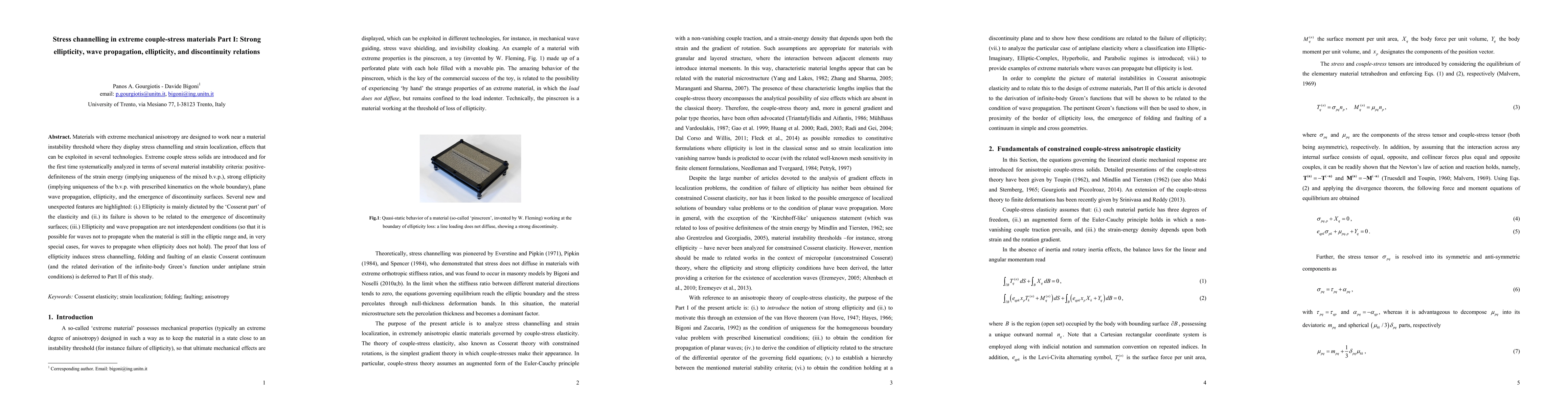This paper investigates extreme couple-stress materials near a mechanical instability threshold, focusing on stress channelling and strain localization. It systematically analyzes strong ellipticity, wave propagation, and the emergence of discontinuity surfaces, revealing that ellipticity is primarily influenced by the 'Cosserat part' and its failure is linked to discontinuity surfaces.