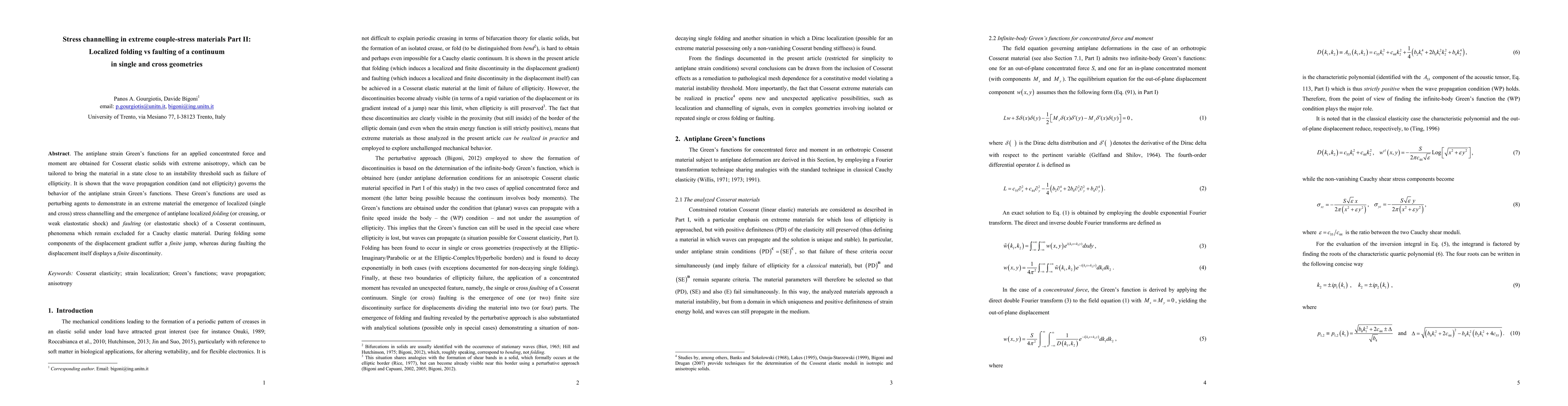 This paper investigates the antiplane strain Green's functions in extreme couple-stress materials, revealing that wave propagation conditions dictate material behavior. It demonstrates the emergence of localized folding and faulting in these materials, phenomena not observed in Cauchy elastic materials.