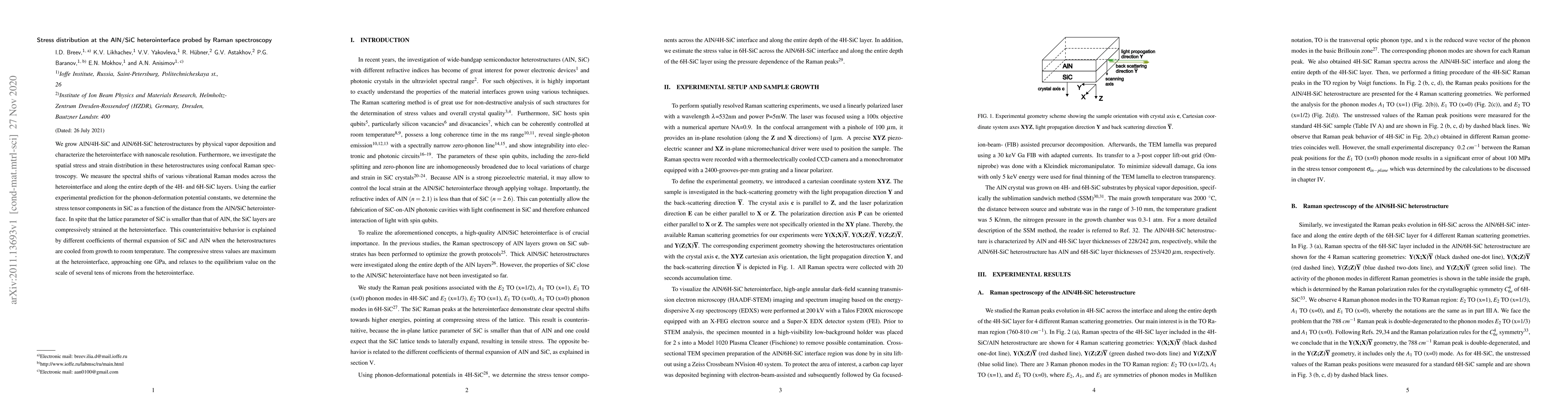 This research investigates AlN/SiC heterostructures, finding that despite AlN's larger lattice parameter, SiC layers are compressively strained at the heterointerface due to differing thermal expansion coefficients. Raman spectroscopy reveals maximum compressive stress of nearly 1 GPa at the interface, decreasing to equilibrium values over tens of microns.