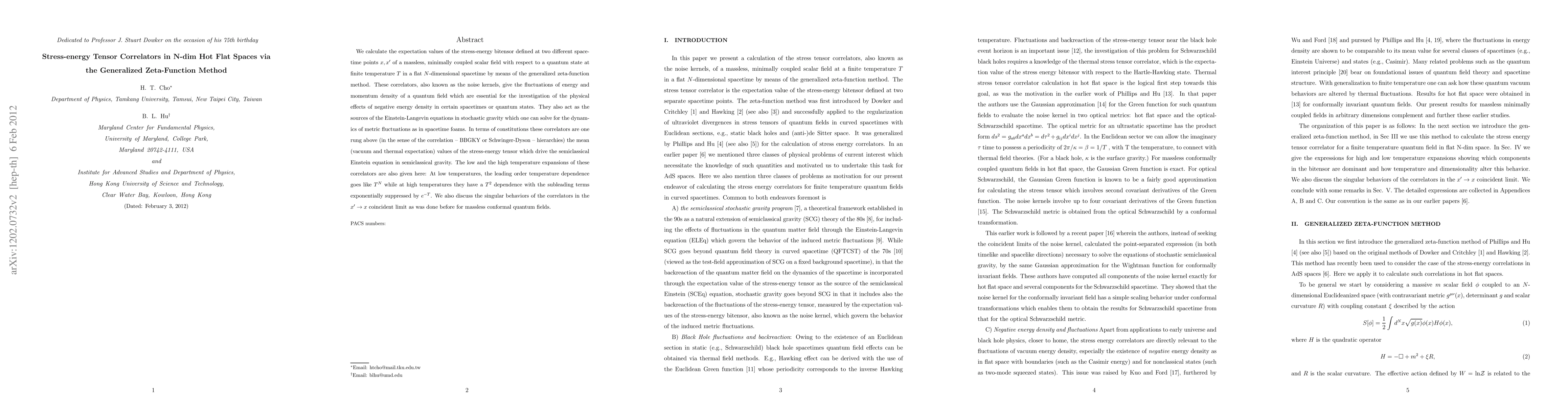 We calculate the expectation values of the stress-energy bitensor defined at two different spacetime points $x, x'$ of a massless, minimally coupled scalar field with respect to a quantum state at finite temperature $T$ in a flat $N$-dimensional spacetime by means of the generalized zeta-function method. These correlators, also known as the noise kernels, give the fluctuations of energy and momentum density of a quantum field which are essential for the investigation of the physical effects of negative energy density in certain spacetimes or quantum states. They also act as the sources of the Einstein-Langevin equations in stochastic gravity which one can solve for the dynamics of metric fluctuations as in spacetime foams. In terms of constitutions these correlators are one rung above (in the sense of the correlation -- BBGKY or Schwinger-Dyson -- hierarchies) the mean (vacuum and thermal expectation) values of the stress-energy tensor which drive the semiclassical Einstein equation in semiclassical gravity. The low and the high temperature expansions of these correlators are also given here: At low temperatures, the leading order temperature dependence goes like $T^{N}$ while at high temperatures they have a $T^{2}$ dependence with the subleading terms exponentially suppressed by $e^{-T}$. We also discuss the singular behaviors of the correlators in the $x'\rightarrow x$ coincident limit as was done before for massless conformal quantum fields.