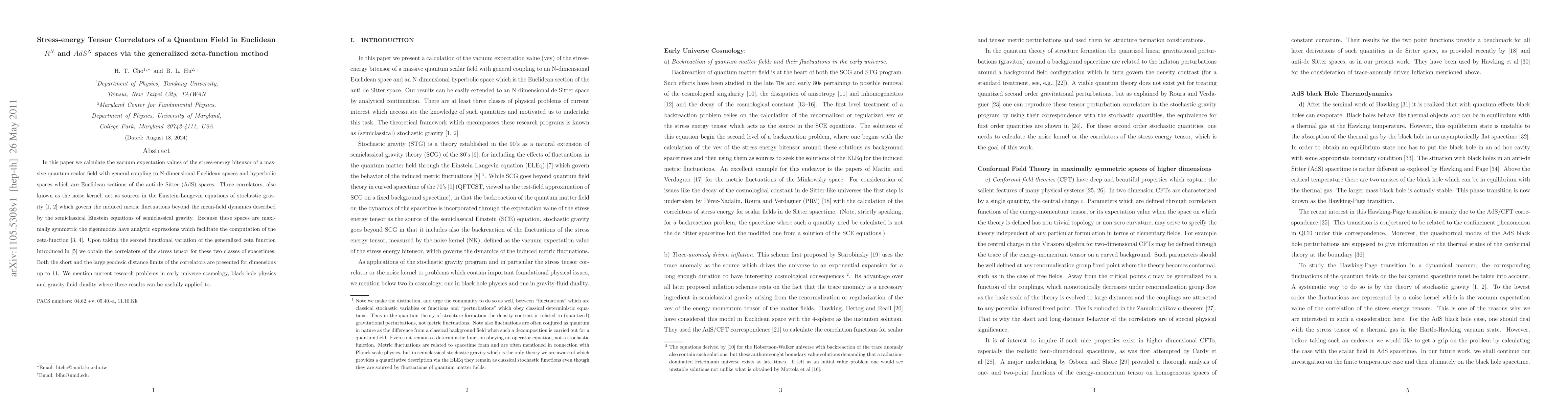 In this paper we calculate the vacuum expectation values of the stress-energy bitensor of a massive quantum scalar field with general coupling to N-dimensional Euclidean spaces and hyperbolic spaces which are Euclidean sections of the anti-de Sitter (AdS) spaces. These correlators, also known as the noise kernel, act as sources in the Einstein-Langevin equations of stochastic gravity [1,2] which govern the induced metric fluctuations beyond the mean-field dynamics described by the semiclassical Einstein equations of semiclassical gravity. Because these spaces are maximally symmetric the eigenmodes have analytic expressions which facilitate the computation of the zeta-function [3,4]. Upon taking the second functional variation of the generalized zeta function introduced in [5] we obtain the correlators of the stress tensor for these two classes of spacetimes. Both the short and the large geodesic distance limits of the correlators are presented for dimensions up to 11. We mention current research problems in early universe cosmology, black hole physics and gravity-fluid duality where these results can be usefully applied to.