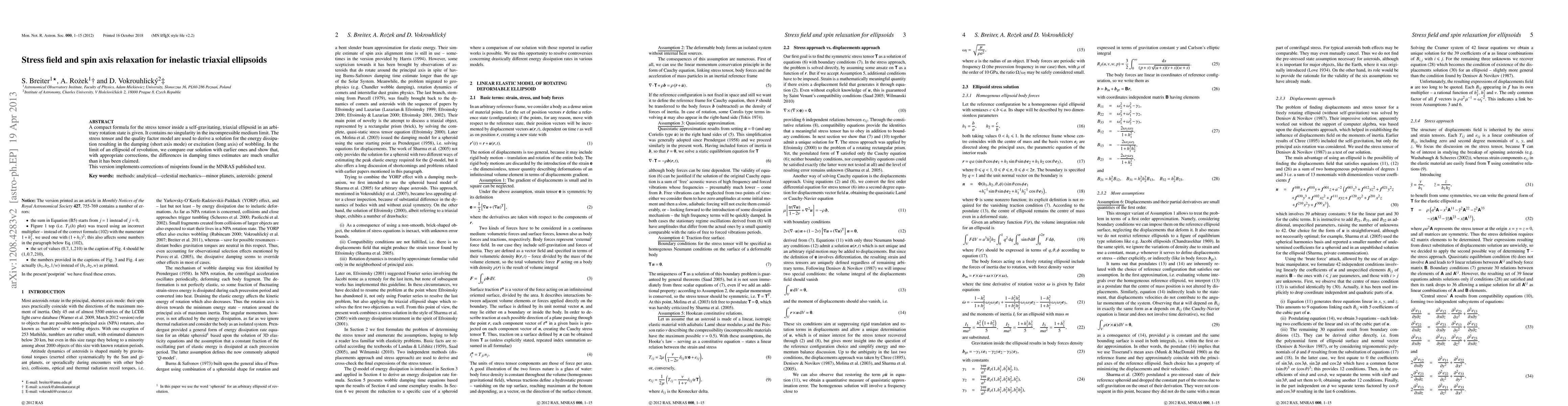 A compact formula for the stress tensor inside a self-gravitating, triaxial ellipsoid in an arbitrary rotation state is given. It contains no singularity in the incompressible medium limit. The stress tensor and the quality factor model are used to derive a solution for the energy dissipation resulting in the damping (short axis mode) or excitation (long axis) of wobbling. In the limit of an ellipsoid of revolution, we compare our solution with earlier ones and show that, with appropriate corrections, the differences in damping times estimates are much smaller than it has been claimed. This version implements corrections of misprints found in the MNRAS published text.