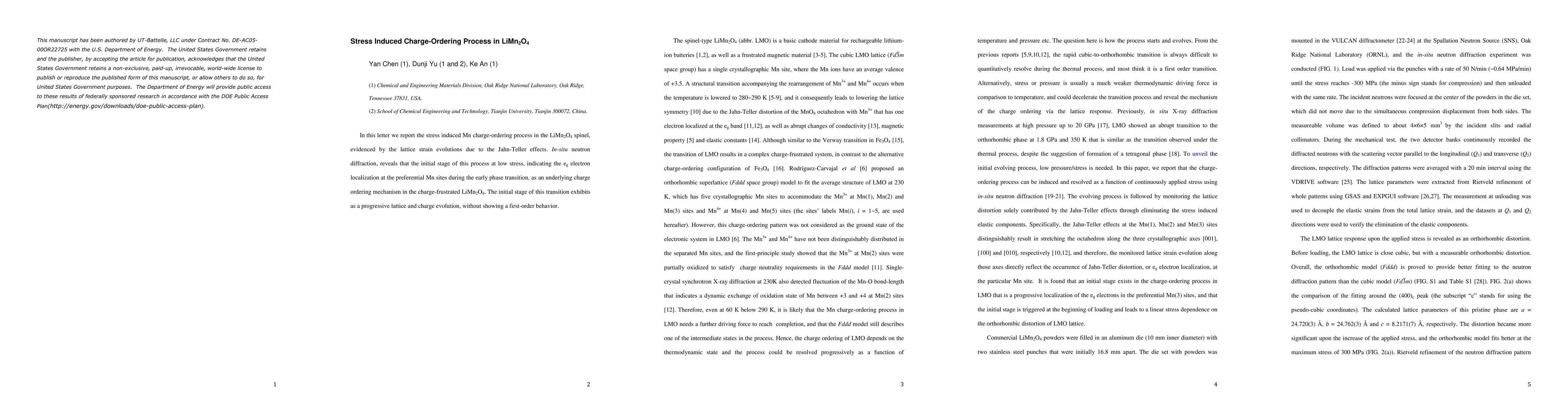 In this letter we report the stress induced Mn charge-ordering process in the LiMn2O4 spinel, evidenced by the lattice strain evolutions due to the Jahn-Teller effects. In-situ neutron diffraction, reveals that the initial stage of this process at low stress, indicating the eg electron localization at the preferential Mn sites during the early phase transition, as an underlying charge ordering mechanism in the charge-frustrated LiMn2O4. The initial stage of this transition exhibits as a progressive lattice and charge evolution, without showing a first-order behavior.