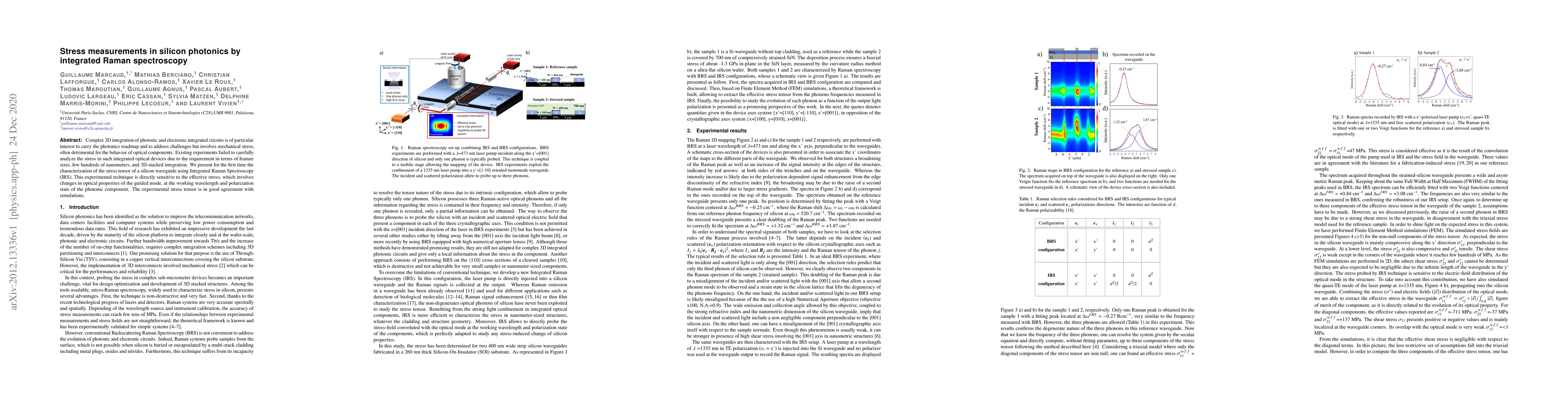 This paper presents the first characterization of stress in silicon photonics using Integrated Raman Spectroscopy, revealing effective stress tensors in silicon waveguides. The technique directly measures stress-induced optical property changes, aligning experimental results with simulations.