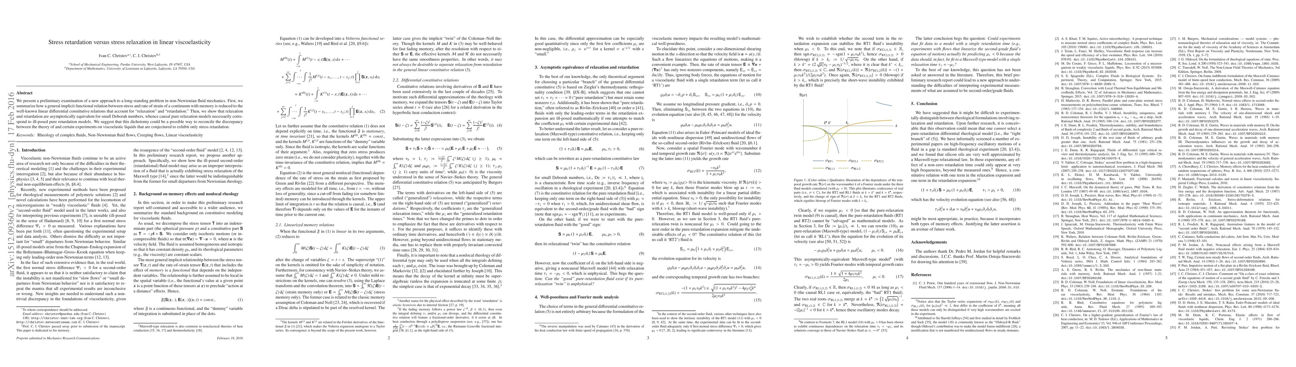 We present a preliminary examination of a new approach to a long-standing problem in non-Newtonian fluid mechanics. First, we summarize how a general implicit functional relation between stress and rate of strain of a continuum with memory is reduced to the well-known linear differential constitutive relations that account for "relaxation" and "retardation." Then, we show that relaxation and retardation are asymptotically equivalent for small Deborah numbers, whence causal pure relaxation models necessarily correspond to ill-posed pure retardation models. We suggest that this dichotomy could be a possible way to reconcile the discrepancy between the theory of and certain experiments on viscoelastic liquids that are conjectured to exhibit only stress retardation.