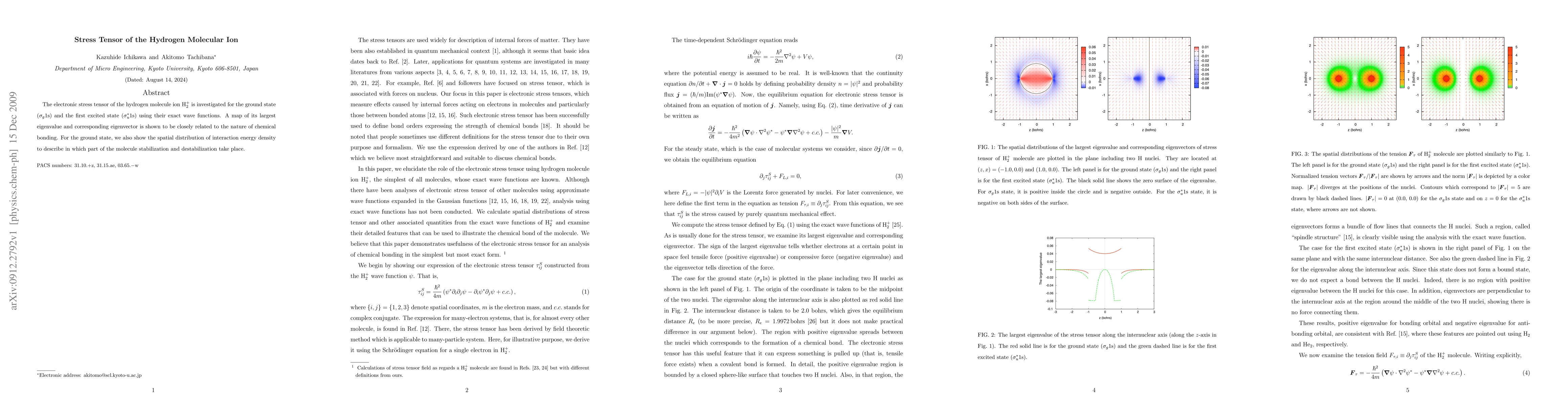 Researchers studied the stress tensor of the hydrogen molecular ion in its ground state and first excited state, finding a connection between the tensor's largest eigenvalue and chemical bonding. The study provides insights into where energy is stabilized or destabilized within the molecule.