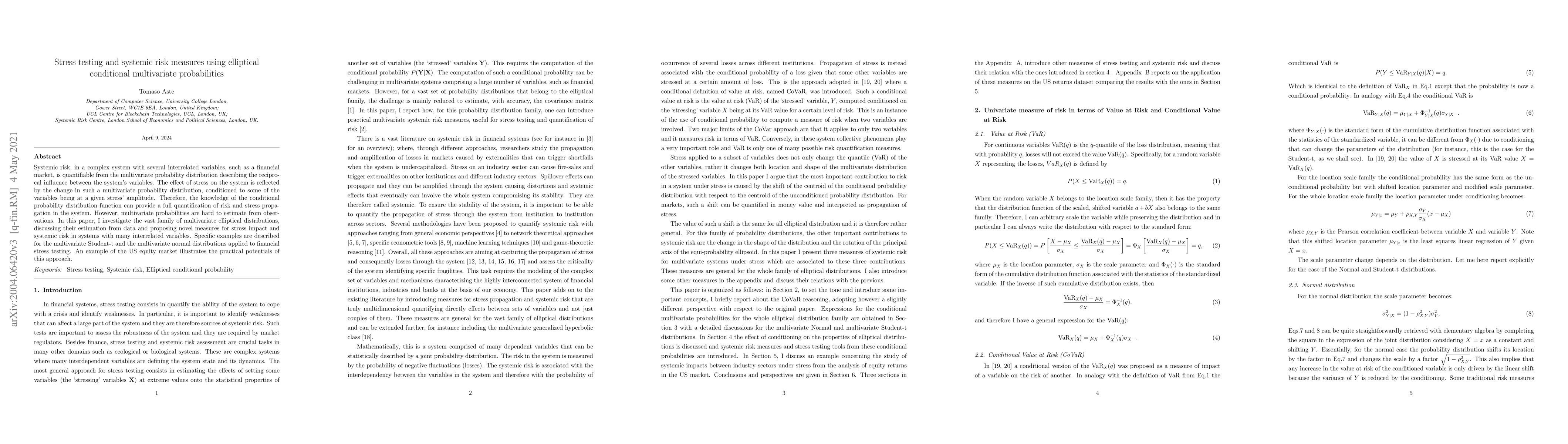 This paper develops methods for stress-testing financial systems using multivariate conditional probability distributions, particularly focusing on elliptical distributions like the multivariate Student-t and Normal. It proposes measures to quantify systemic risk and demonstrates the approach through an analysis of the US equity market.