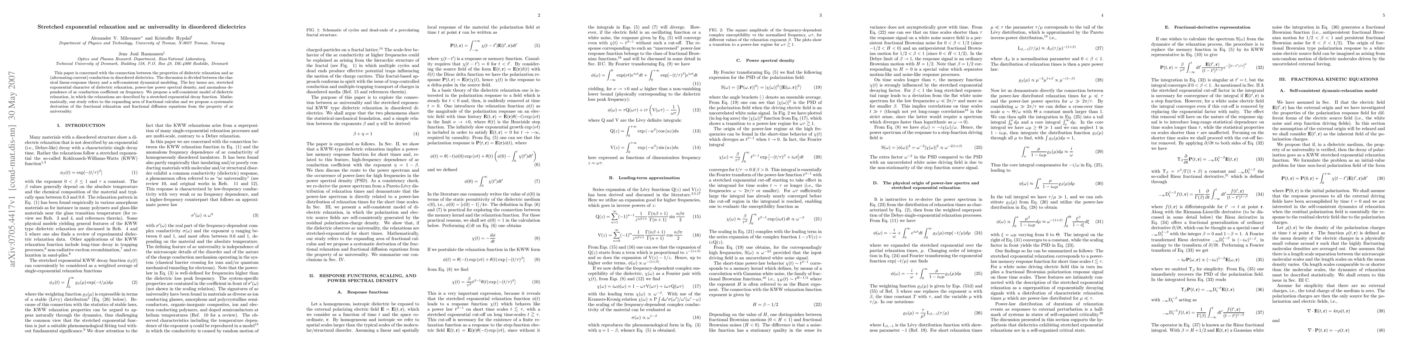This paper is concerned with the connection between the properties of dielectric relaxation and ac (alternating-current) conduction in disordered dielectrics. The discussion is divided between the classical linear-response theory and a self-consistent dynamical modeling. The key issues are, stretched exponential character of dielectric relaxation, power-law power spectral density, and anomalous dependence of ac conduction coefficient on frequency. We propose a self-consistent model of dielectric relaxation, in which the relaxations are described by a stretched exponential decay function. Mathematically, our study refers to the expanding area of fractional calculus and we propose a systematic derivation of the fractional relaxation and fractional diffusion equations from the property of ac universality.