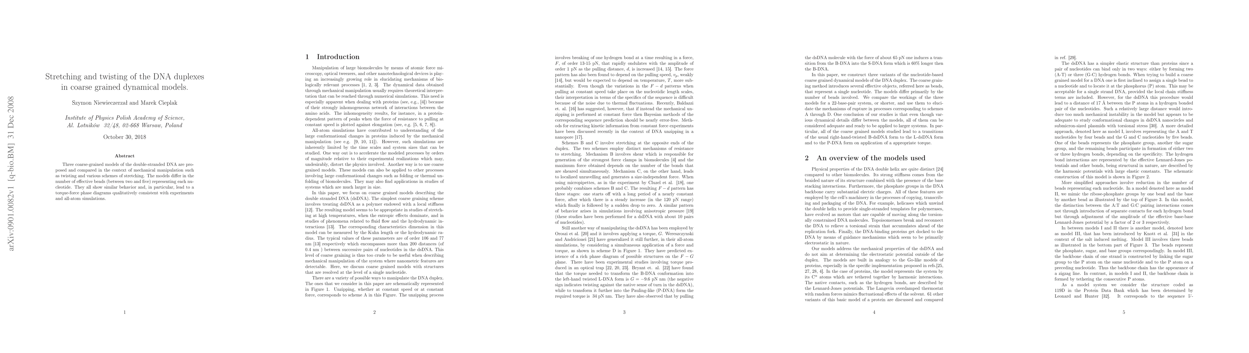 This paper proposes three coarse-grained models of DNA duplexes, varying in bead complexity, and compares their mechanical behavior under twisting and stretching. The models yield torque-force phase diagrams that align with experimental and all-atom simulation data.