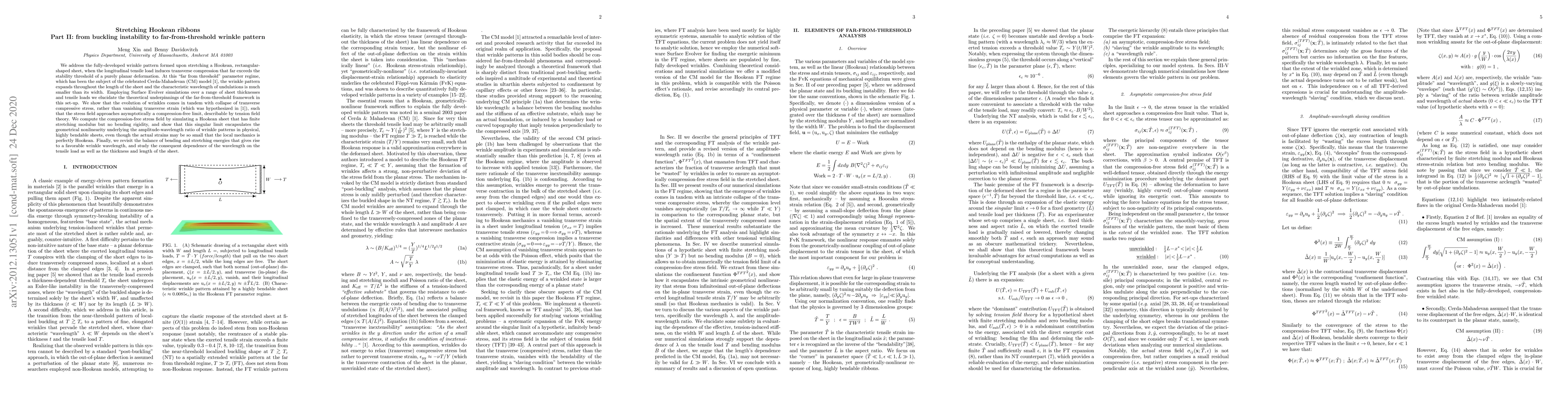 Researchers studied how a Hookean sheet wrinkle when stretched beyond its stability threshold, finding that wrinkles expand along the length of the sheet and their wavelength is smaller than their width. The study provides insights into the underlying mechanisms driving wrinkle patterns in bendable sheets.