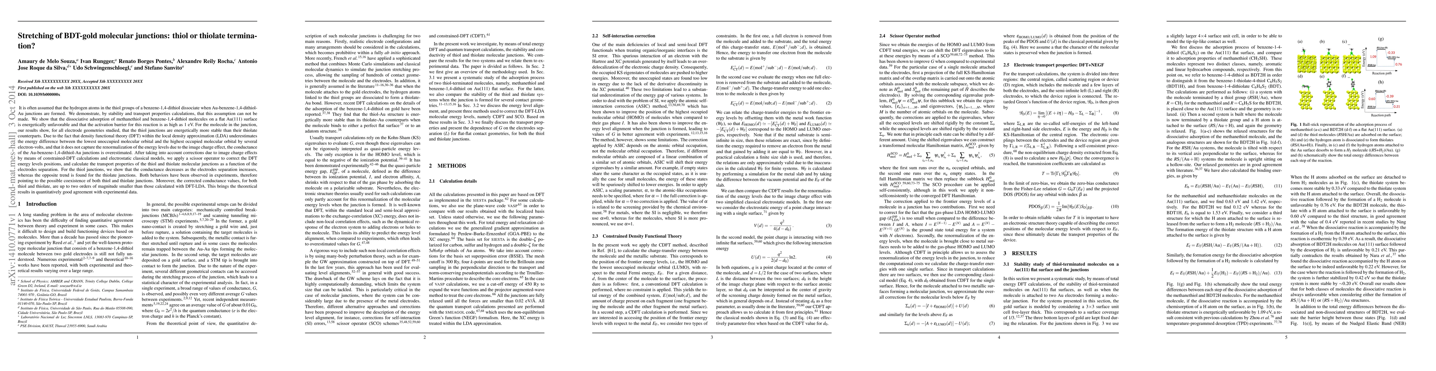 This paper investigates the stability and transport properties of benzene-1,4-dithiol (BDT) molecular junctions terminated by thiol or thiolate groups. It finds that thiol groups do not readily dissociate on gold surfaces, contrary to common assumptions, and that thiol junctions are more stable than thiolate ones. The study corrects for DFT limitations to accurately calculate the conductance of these junctions.