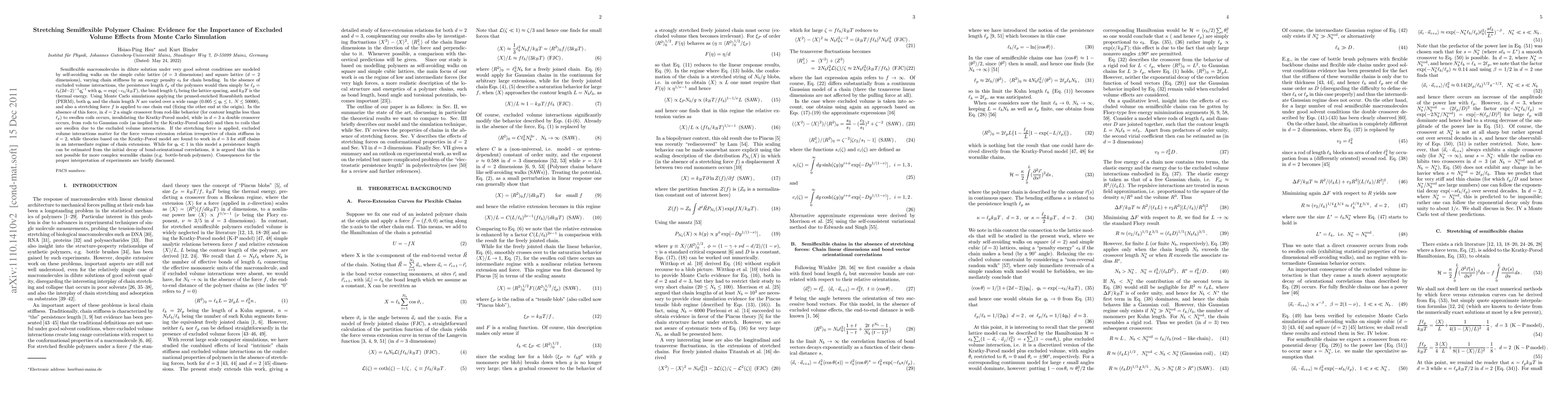 This paper uses Monte Carlo simulations to study semiflexible polymer chains under various conditions, emphasizing the role of excluded volume effects. It finds that excluded volume interactions significantly influence the force-extension relationship in two dimensions, while the Kratky-Porod model holds for stiff chains in three dimensions. The study highlights the importance of these interactions for interpreting experimental data on polymer behavior.