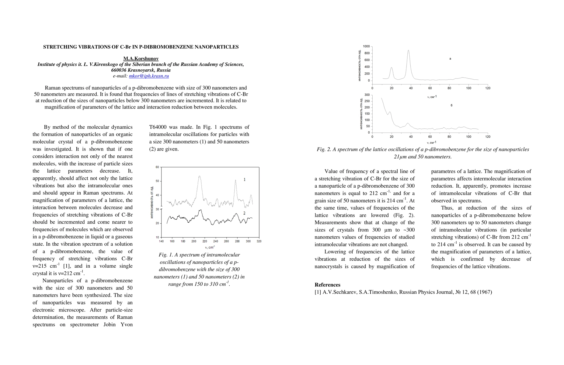 This study investigates the Raman spectra of p-dibromobenzene nanoparticles, revealing that the stretching vibration frequencies of C-Br increase as particle size decreases below 300 nanometers, attributed to enhanced lattice parameters and reduced intermolecular interactions.