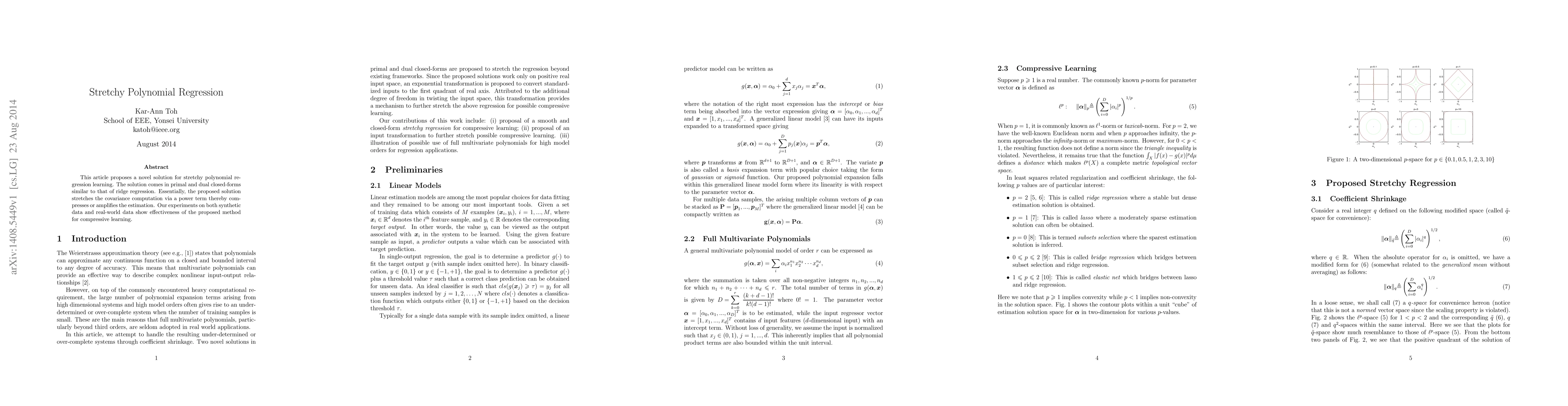 This paper proposes a novel solution for stretchy polynomial regression learning that compresses estimation through covariance computation power terms, showing effectiveness on synthetic and real-world data.