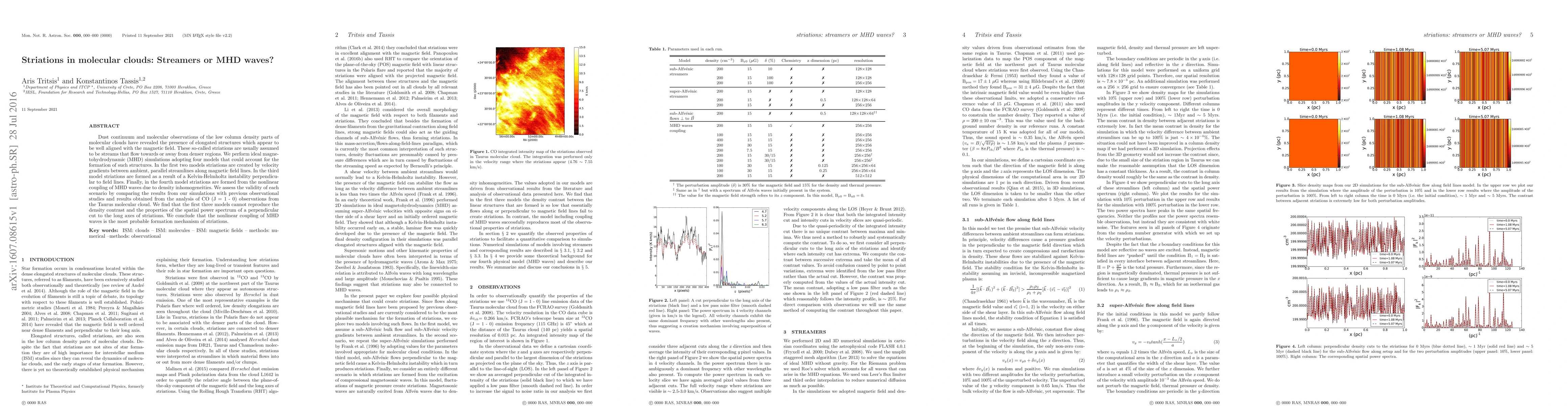 The paper presents detailed MHD simulations and comparative analysis, demonstrating the importance of nonlinear MHD wave coupling in forming molecular cloud striations.