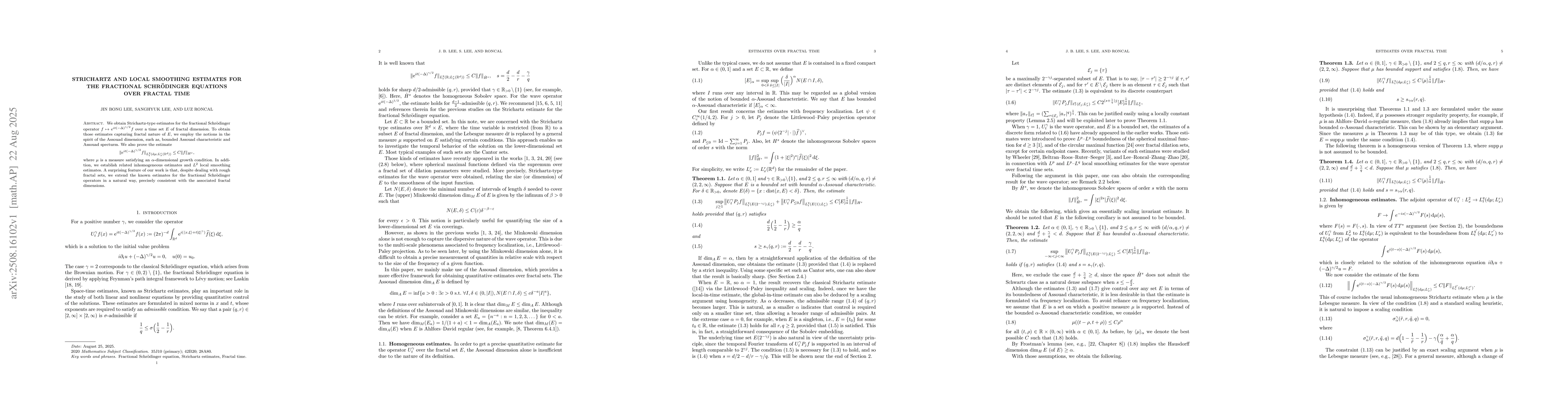 We obtain Strichartz-type estimates for the fractional Schr\"odinger operator $f \mapsto e^{it(-\Delta)^{\gamma/2}} f$ over a time set $E$ of fractal dimension. To obtain those estimates capturing fractal nature of $E$, we employ the notions in the spirit of the Assouad dimension, such as, bounded Assouad characteristic and Assouad specturm. We also prove the estimate $$ \| e^{it(-\Delta)^{\gamma/2}} f \|_{L_t^q(\mathrm{d}\mu; L_x^r(\mathbb{R}^d))} \le C \|f\|_{H^s}, $$ where $\mu$ is a measure satisfying an $\alpha$-dimensional growth condition. In addition, we establish related inhomogeneous estimates and $L^2$ local smoothing estimates. A surprising feature of our work is that, despite dealing with rough fractal sets, we extend the known estimates for the fractional Schr\"odinger operators in a natural way, precisely consistent with the associated fractal dimensions.