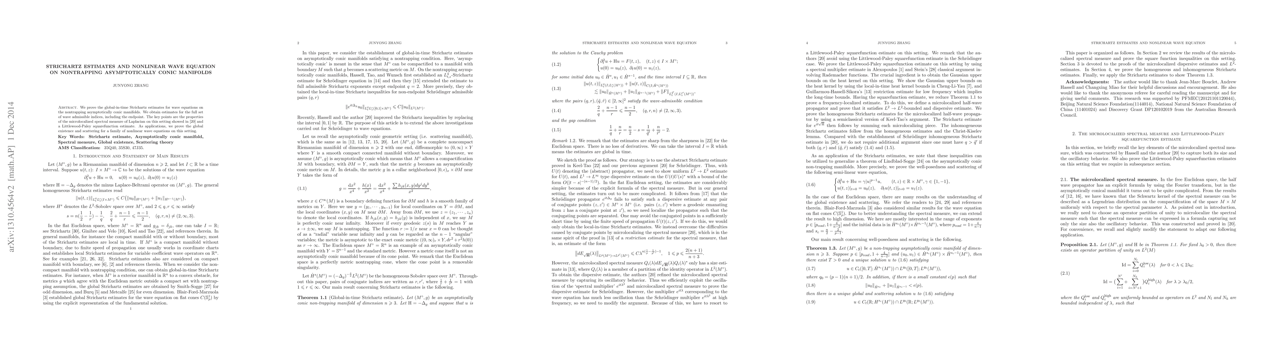 Researchers prove global-in-time Strichartz estimates for wave equations on nontrapping asymptotically conic manifolds, enabling global existence and scattering for nonlinear wave equations.