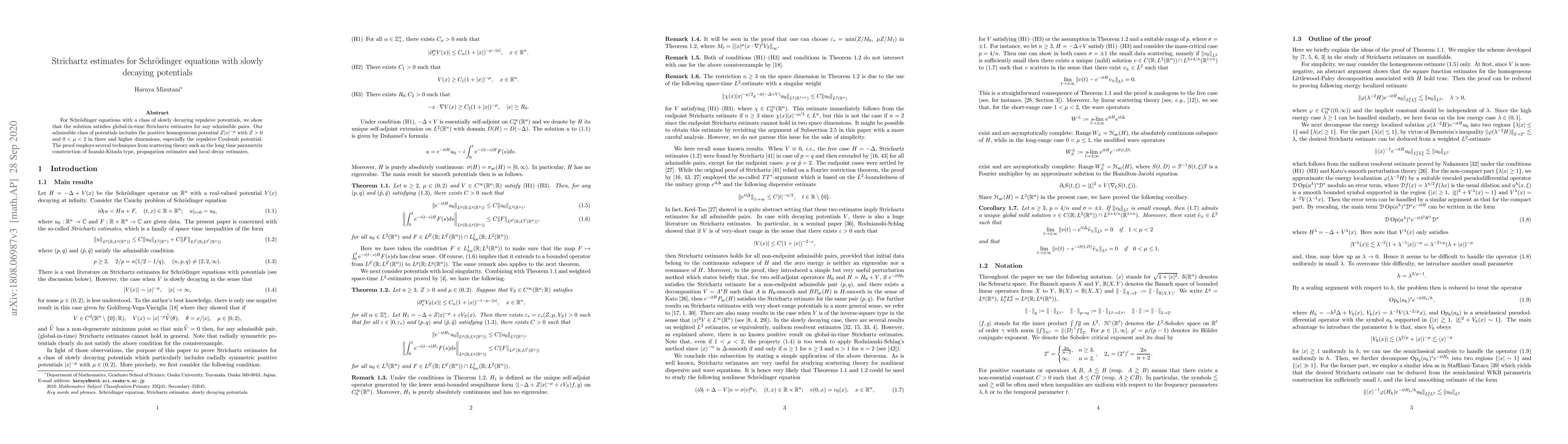 This paper demonstrates global-in-time Strichartz estimates for solutions to Schrödinger equations with slowly decaying repulsive potentials, including the Coulomb potential, using techniques from scattering theory and propagation estimates. The admissible potentials encompass positive homogeneous potentials of the form $Z|x|^{-\mu}$ with $0 < \mu < 2$.