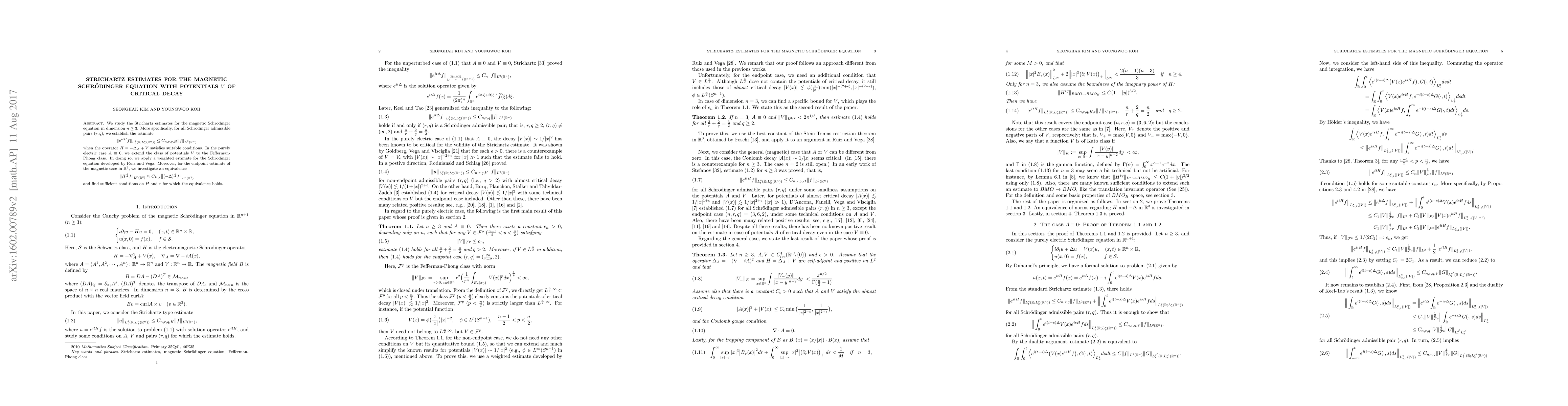 This research paper establishes Strichartz estimates for the magnetic Schr"odinger equation in 3+ dimensions, providing bounds on the norm of solutions with certain conditions on the potential.