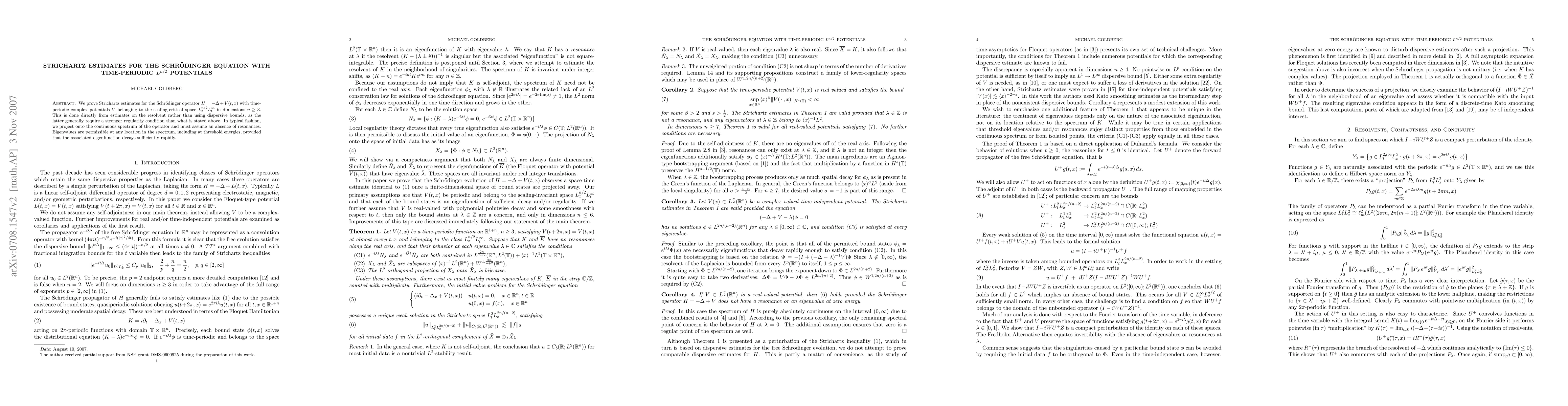 This paper proves Strichartz estimates for the Schrödinger equation with time-periodic $L^{n/2}$ potentials in dimensions $n \geq 3$, derived directly from resolvent estimates instead of dispersive bounds, which typically require stronger regularity conditions. The analysis assumes no resonances and allows for eigenvalues, especially at threshold energies, if associated eigenfunctions decay sufficiently.