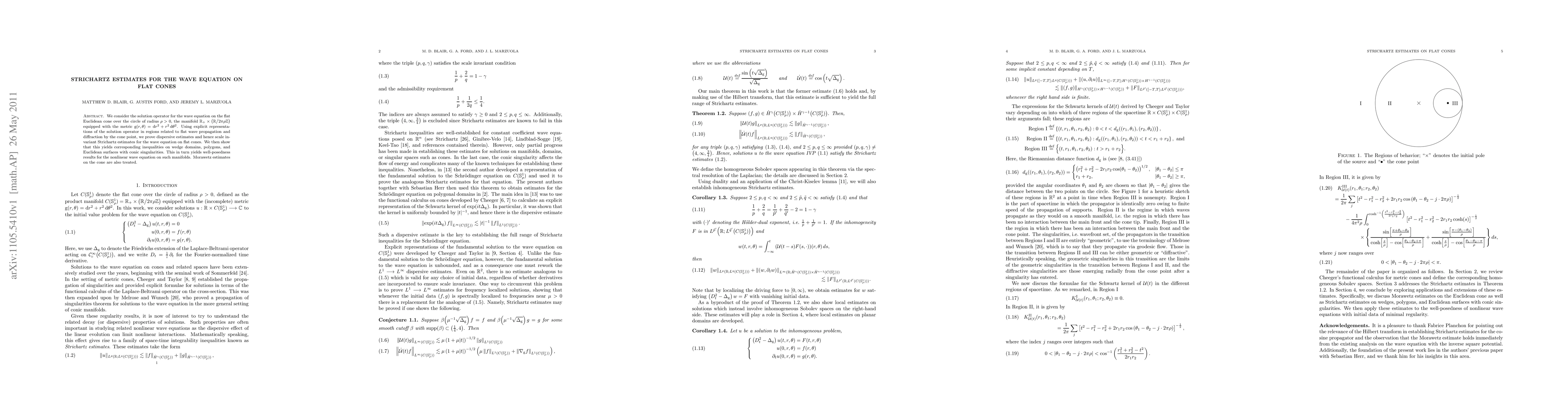 The paper establishes explicit Strichartz estimates for the wave equation on flat cones, which are then extended to more general geometric settings, providing a robust framework for analyzing wave propagation in conical domains.