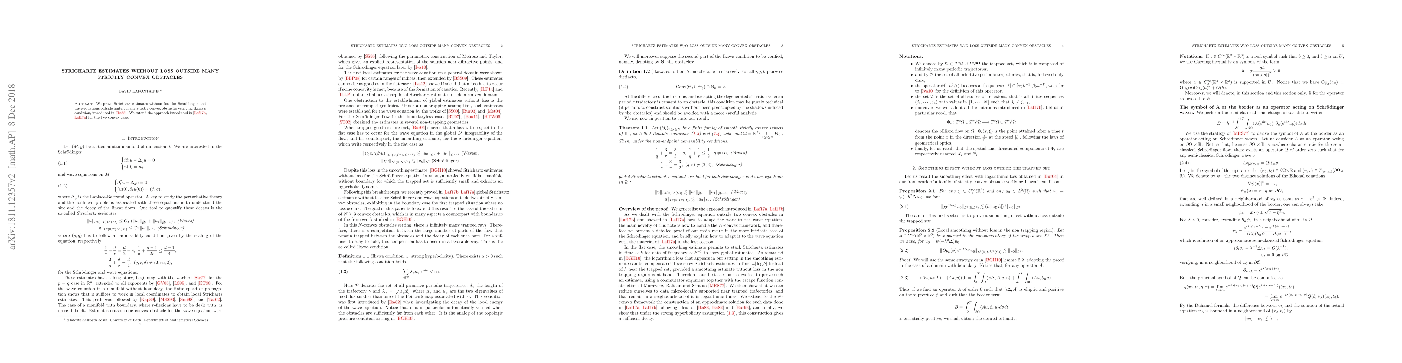 This paper proves Strichartz estimates without loss for the Schrödinger and wave equations outside multiple strictly convex obstacles that satisfy Ikawa's condition, extending earlier results for the case of two convex obstacles.