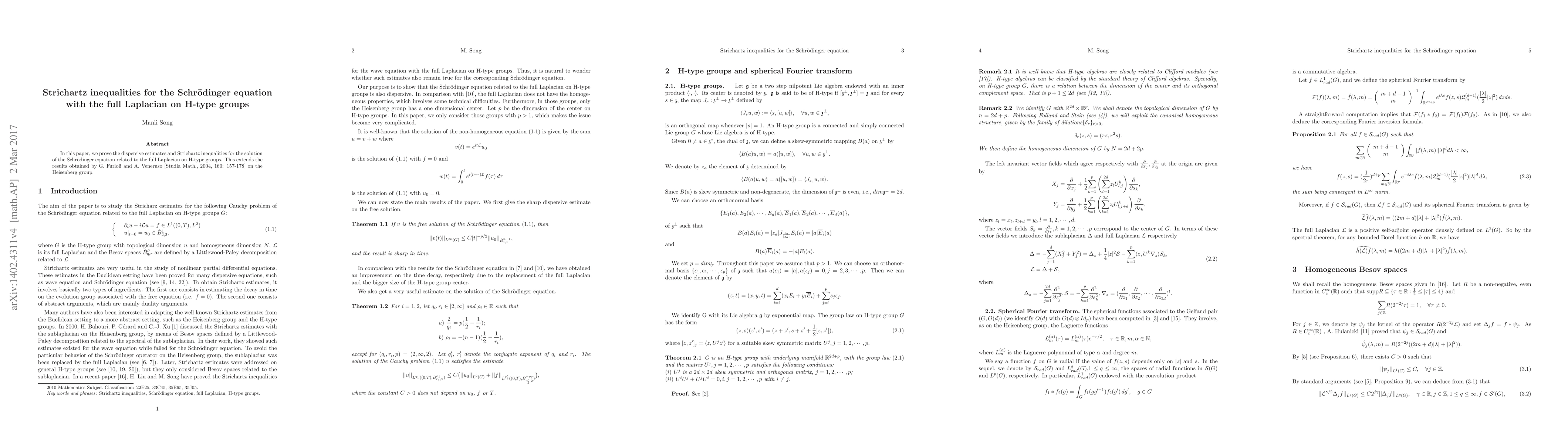 This paper establishes dispersive estimates and Strichartz inequalities for the Schrödinger equation with the full Laplacian on H-type groups, extending previous results for the Heisenberg group by Furioli and Veneruso.