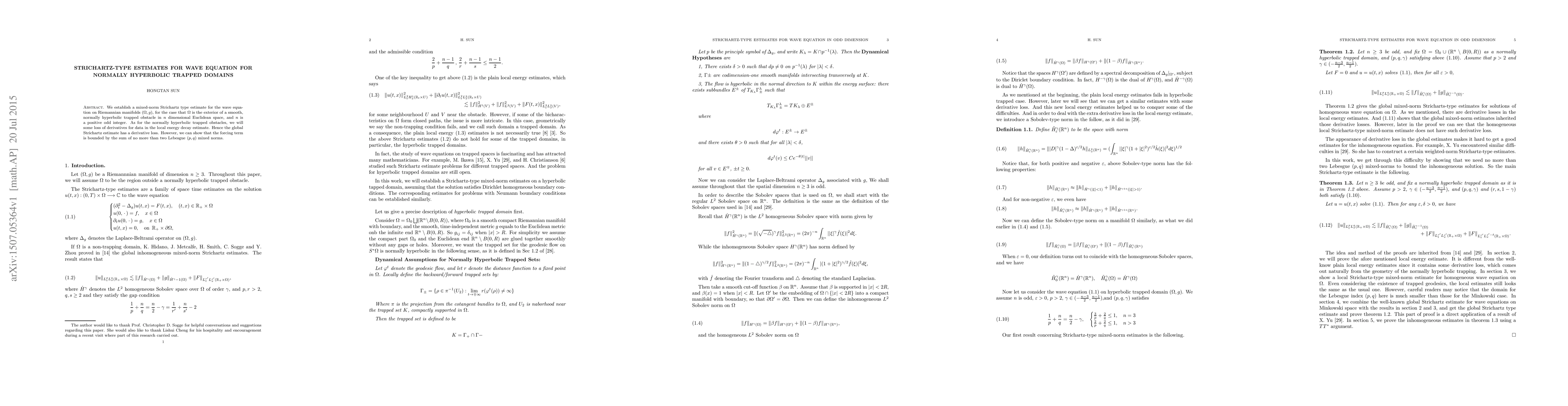 This research paper establishes a mixed-norm Strichartz type estimate for the wave equation on Riemannian manifolds with a normally hyperbolic trapped obstacle in Euclidean space.