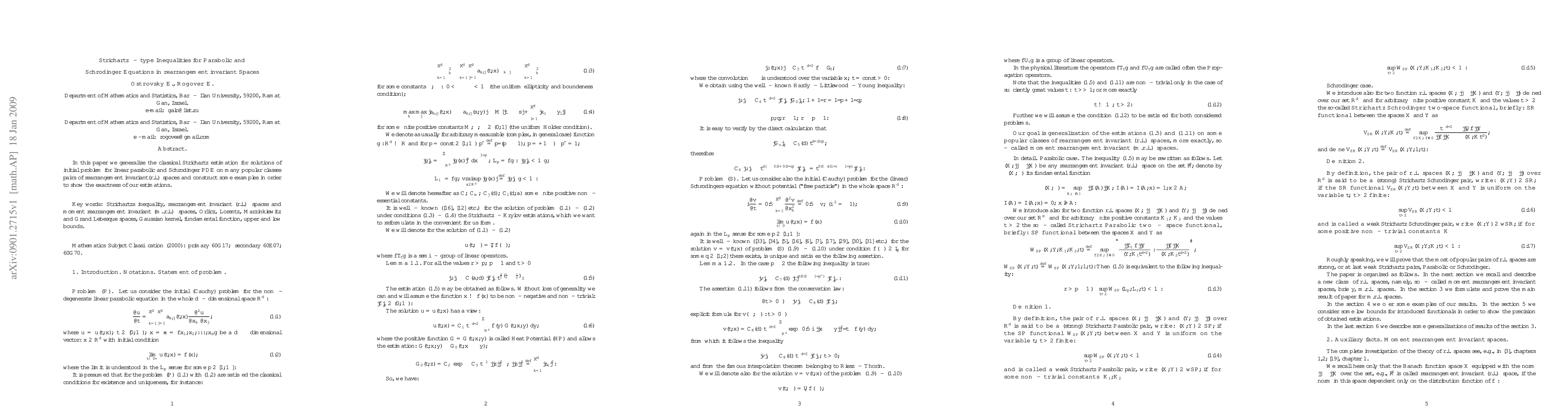 In this paper we generalize the classical Strichartz estimation for solutions of initial problem for linear parabolic and Schr\"odinger PDE on many popular classes {\it pairs} of rearrangement invariant(r.i.) spaces and construct some examples in order to show the exactness of our estimations.