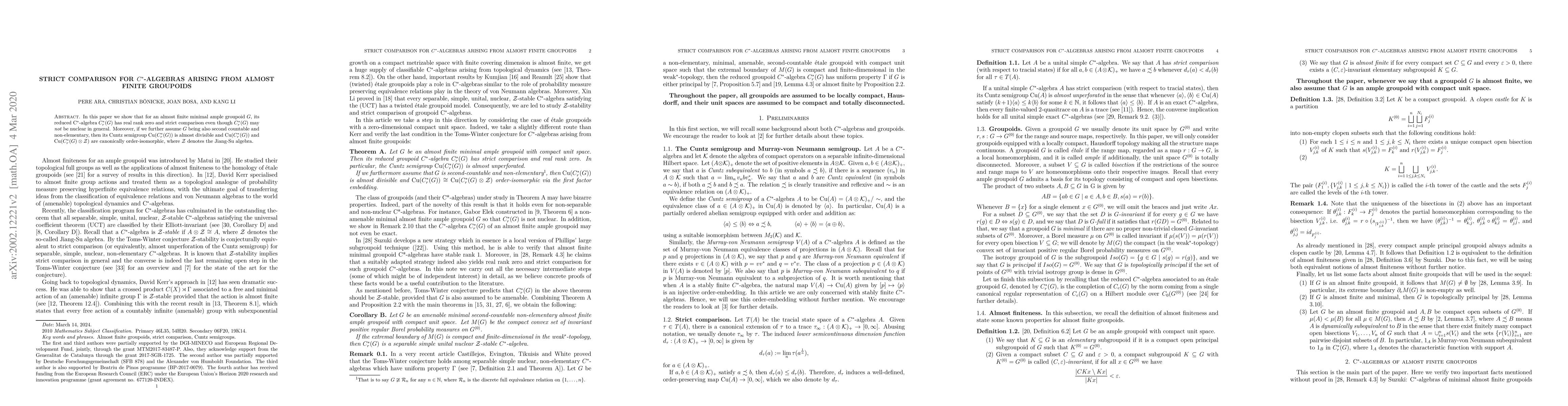 In this paper we show that for an almost finite minimal ample groupoid $G$, its reduced $\mathrm{C}^*$-algebra $C_r^*(G)$ has real rank zero and strict comparison even though $C_r^*(G)$ may not be nuclear in general. Moreover, if we further assume $G$ being also second countable and non-elementary, then its Cuntz semigroup ${\rm Cu}(C_r^*(G))$ is almost divisible and ${\rm Cu}(C_r^*(G))$ and ${\rm Cu}(C_r^*(G)\otimes \mathcal{Z})$ are canonically order-isomorphic, where $\mathcal{Z}$ denotes the Jiang-Su algebra.