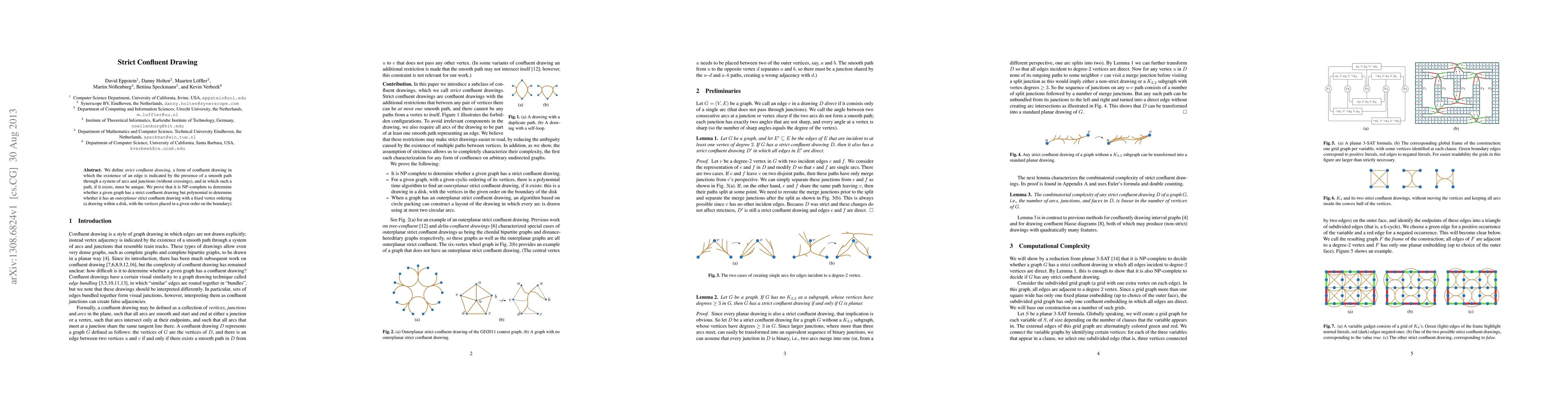 We define strict confluent drawing, a form of confluent drawing in which the existence of an edge is indicated by the presence of a smooth path through a system of arcs and junctions (without crossings), and in which such a path, if it exists, must be unique. We prove that it is NP-complete to determine whether a given graph has a strict confluent drawing but polynomial to determine whether it has an outerplanar strict confluent drawing with a fixed vertex ordering (a drawing within a disk, with the vertices placed in a given order on the boundary).