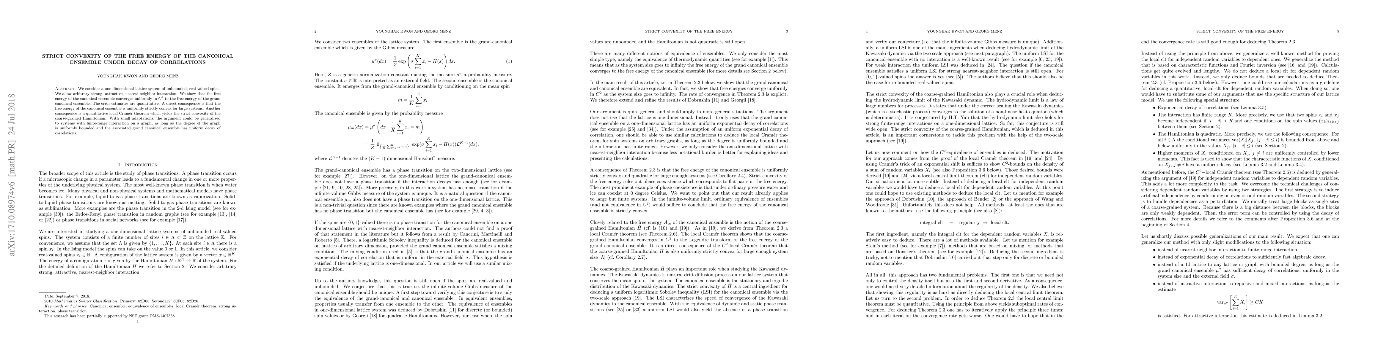 The paper employs a rigorous mathematical approach, utilizing techniques from statistical mechanics and probability theory to analyze the free energy of a one-dimensional lattice system of unbounded, real-valued spins with strong, attractive, nearest-neighbor interactions.
