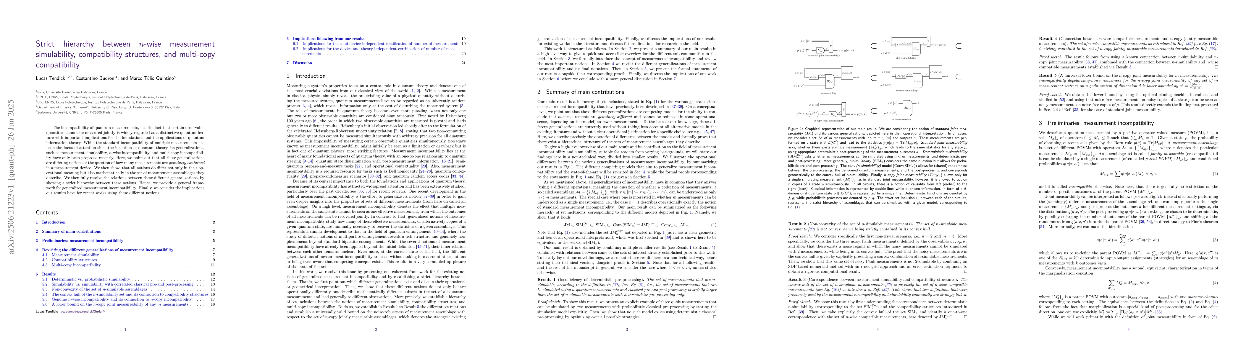 The paper establishes a strict hierarchy among measurement incompatibility notions, proves the non-convexity of the n-simulability set, and demonstrates the equivalence of the convex hull of n-simulable assemblages with n-wise compatibility, providing a unified framework.