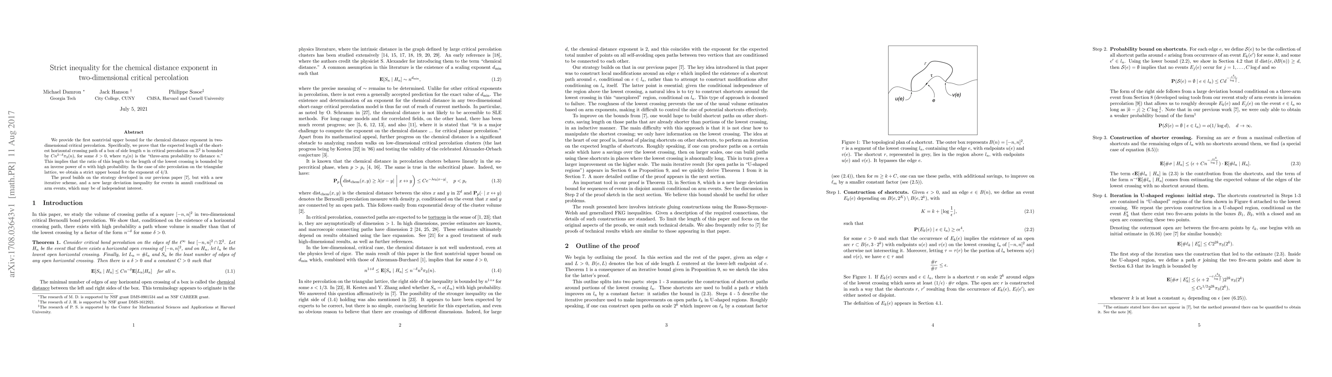 This paper establishes a strict upper bound for the chemical distance exponent in two-dimensional critical percolation, showing that the expected length of the shortest horizontal crossing path is bounded by $Cn^{2-\delta}\pi_3(n)$. The proof introduces a new iterative scheme and a large deviation inequality, extending the methodology from previous work.
