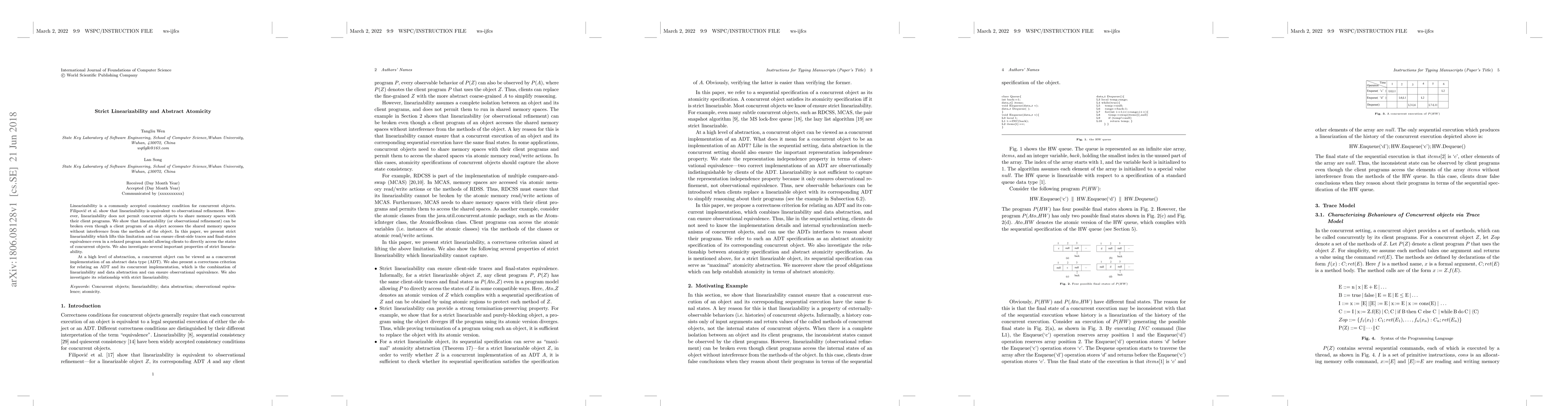 This paper introduces strict linearizability, a refined consistency model that allows concurrent objects to share memory spaces with their client programs without violating observational refinement. It also presents a correctness criterion combining linearizability and data abstraction to ensure observational equivalence between abstract data types and their concurrent implementations.
