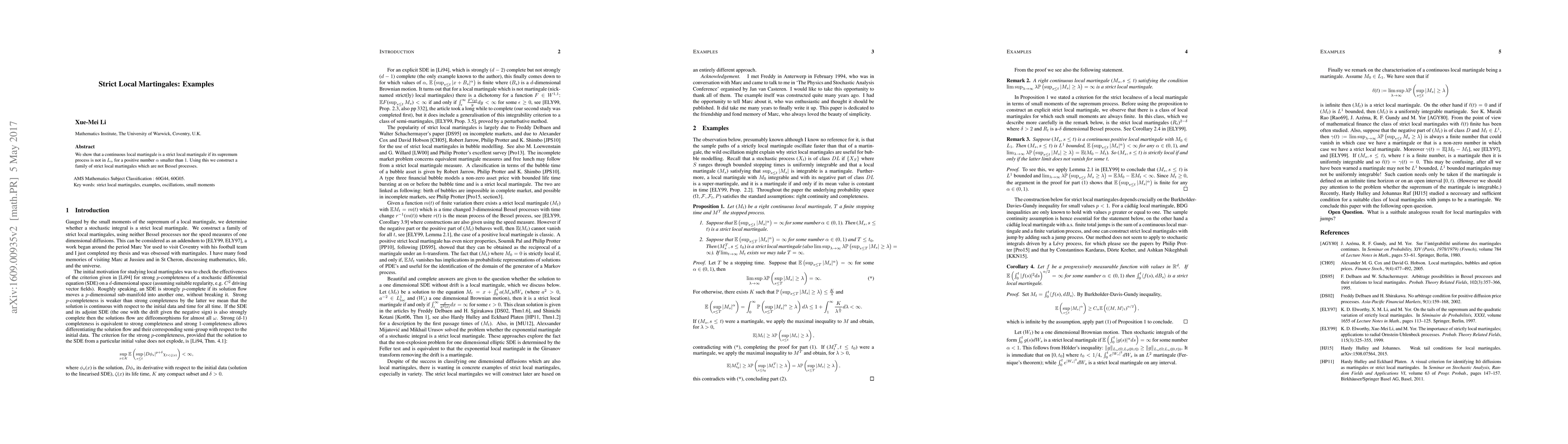Summary: The paper demonstrates that a continuous local martingale qualifies as a strict local martingale when its supremum process does not belong to $L_\alpha$ for any $\alpha < 1$. It also constructs a family of such strict local martingales.