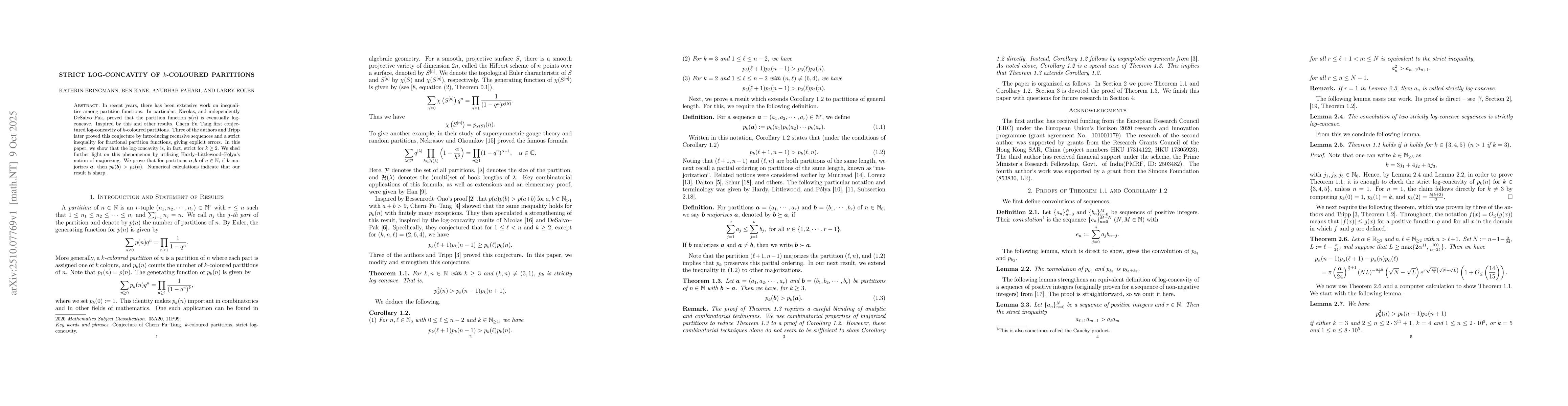 The authors introduced a novel application of Hardy-Littlewood-Pólya's majorization theory to prove strict log-concavity, combined with recursive sequences and fractional partition functions to establish explicit bounds and error terms.