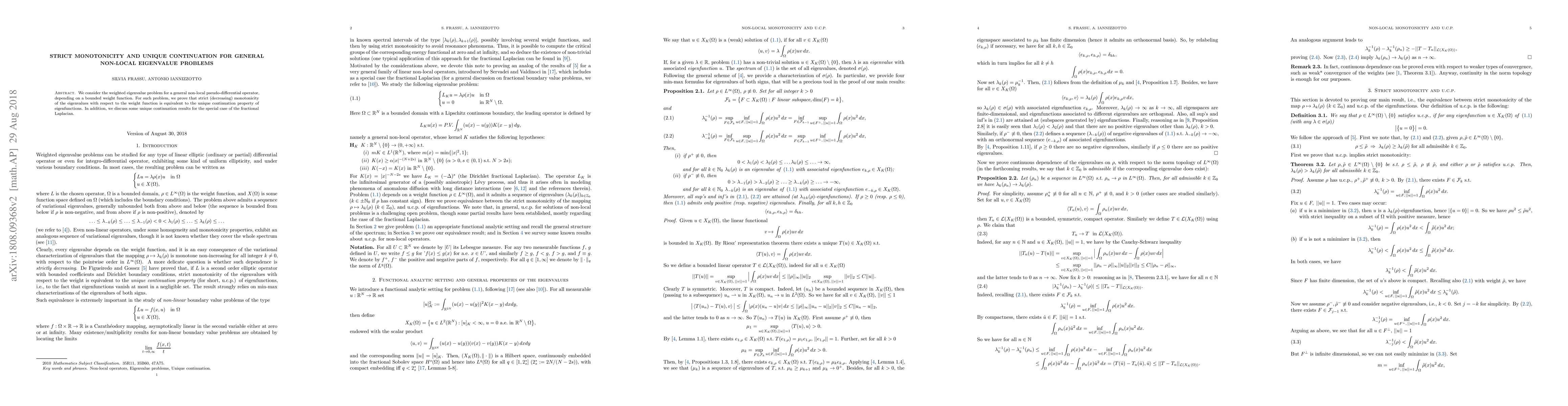 This paper proves that strict monotonicity of eigenvalues for a general non-local pseudo-differential operator is equivalent to the unique continuation property of eigenfunctions. It also explores unique continuation results specifically for the fractional Laplacian.