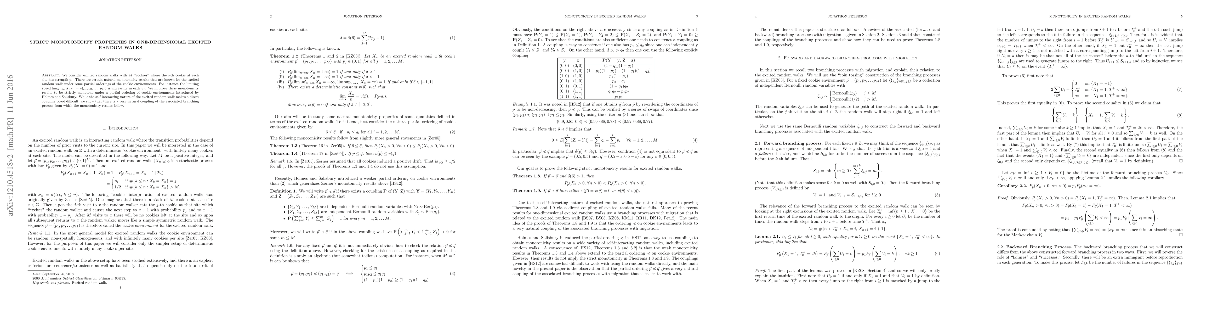 This paper enhances the monotonicity properties of one-dimensional excited random walks by proving strict monotonicity under a specific ordering of cookie environments. The authors achieve this through a coupling of the associated branching process, despite the self-interacting nature of the random walk.