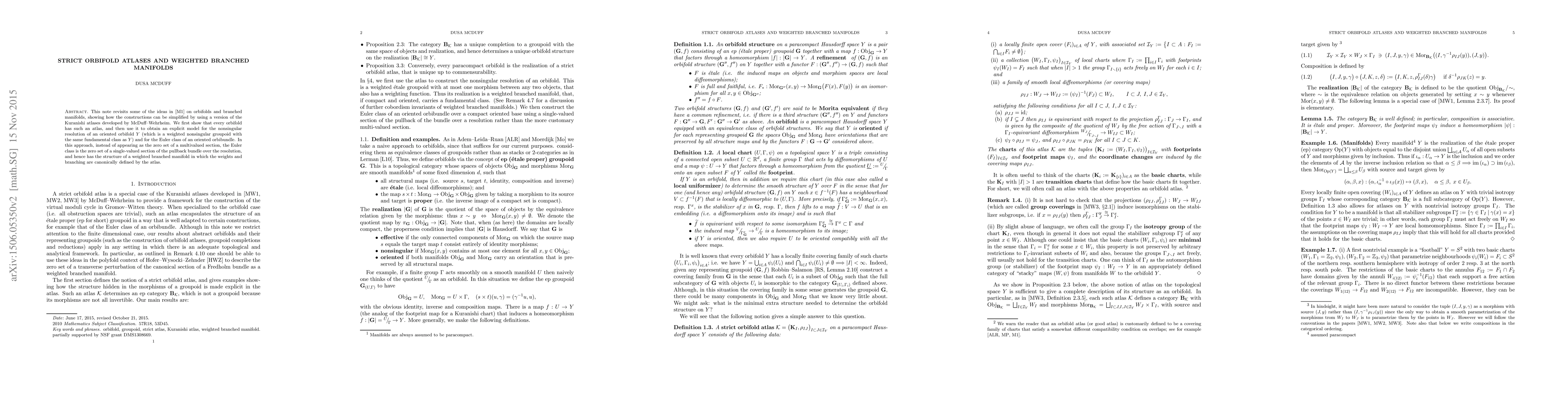 This note revisits the ideas in an earlier (2007) paper on orbifolds and branched manifolds, showing how the constructions can be simplified by using a version of the Kuranishi atlases recently developed by McDuff--Wehrheim. We first show that every orbifold has such an atlas, and then use it to obtain explicit models first for the nonsingular resolution of an oriented orbifold (which is a weighted nonsingular groupoid with the same fundamental class) and second for the Euler class of an oriented orbibundle. In this approach, instead of appearing as the zero set of a multivalued section, the Euler class is the zero set of a single-valued section of the pullback bundle over the resolution, and hence has the structure of a weighted branched manifold in which the weights and branching are canonically defined by the atlas.