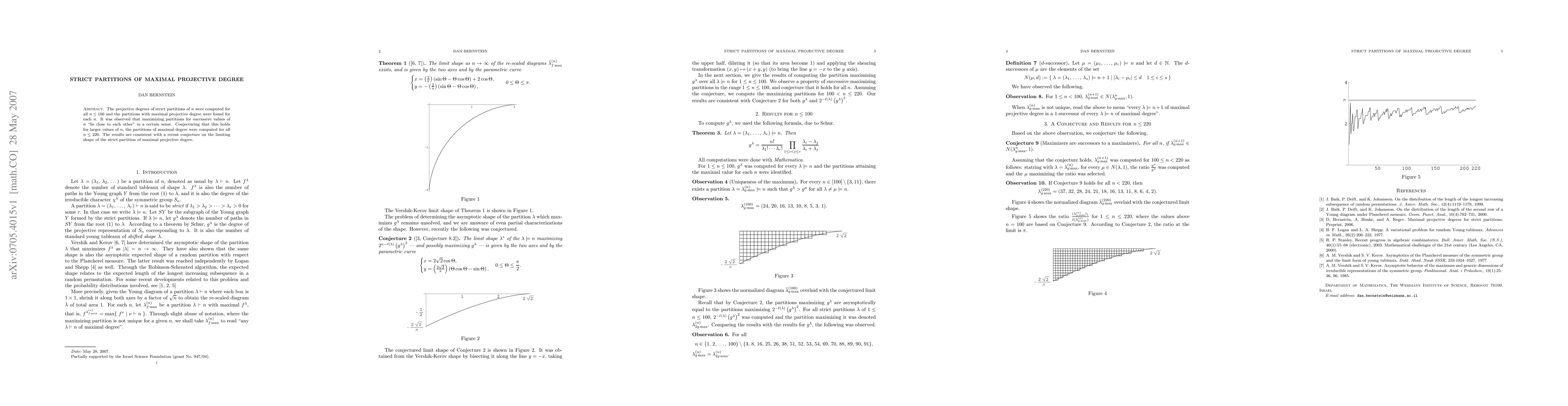 The projective degrees of strict partitions of n were computed for all n < 101 and the partitions with maximal projective degree were found for each n. It was observed that maximizing partitions for successive values of n "lie close to each other" in a certain sense. Conjecturing that this holds for larger values of n, the partitions of maximal degree were computed for all n < 221. The results are consistent with a recent conjecture on the limiting shape of the strict partition of maximal projective degree.
