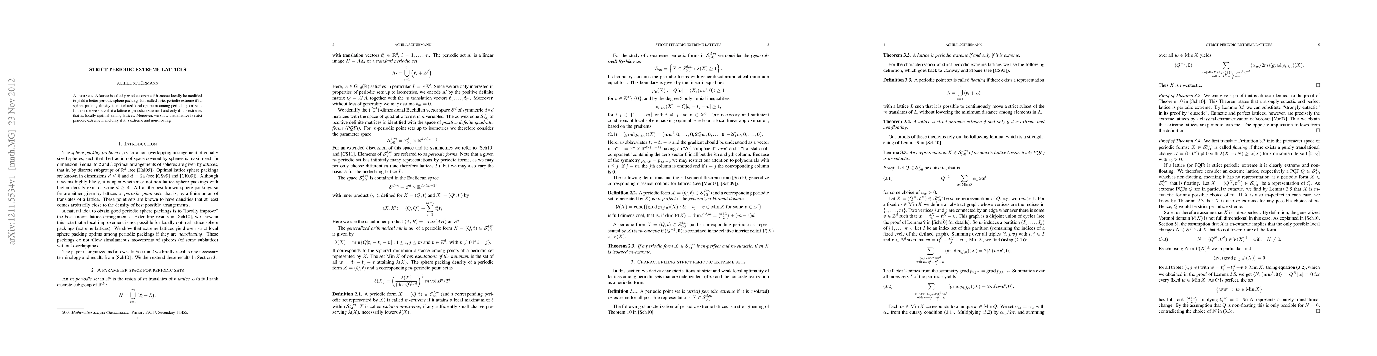 This paper demonstrates that a lattice is periodic extreme if and only if it is extreme, meaning it is locally optimal among lattices. Additionally, it proves that a lattice is strict periodic extreme if and only if it is both extreme and non-floating.
