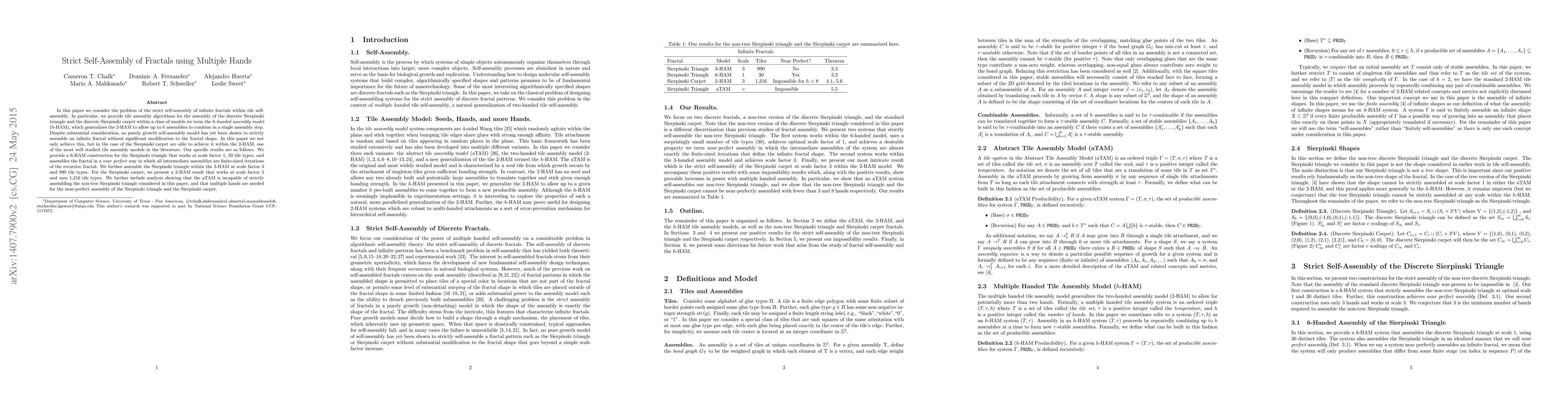 This paper presents tile assembly algorithms for constructing the Sierpinski triangle and carpet using the $h$-HAM model, which allows up to $h$ assemblies to combine in one step. The authors achieve near-perfect assembly of these fractals at different scale factors and tile types, demonstrating that multiple hands are necessary for strict self-assembly without modifying the fractal shapes.