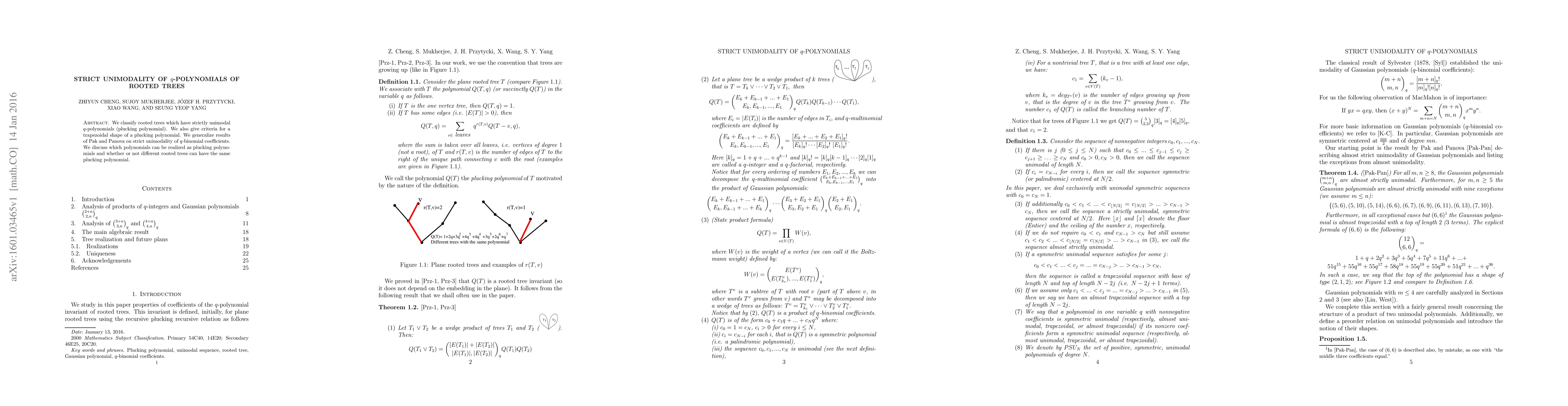 This paper classifies rooted trees with strictly unimodal q-polynomials (plucking polynomials) and provides criteria for their trapezoidal shape, generalizing previous results on strict unimodality of q-binomial coefficients. It also explores which polynomials can be plucked from rooted trees and investigates if different trees can share the same plucking polynomial.