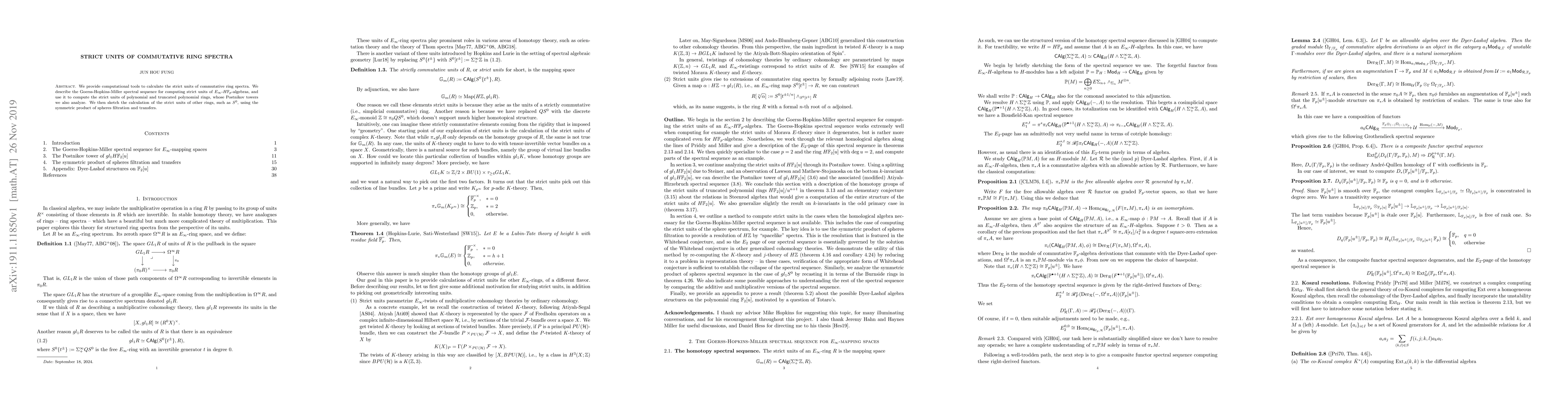 We provide computational tools to calculate the strict units of commutative ring spectra. We describe the Goerss-Hopkins-Miller spectral sequence for computing strict units of $E_\infty$-$H\mathbb{F}_p$-algebras, and use it to compute the strict units of polynomial and truncated polynomial rings, whose Postnikov towers we also analyze. We then sketch the calculation of the strict units of other rings, such as $S^0$, using the symmetric product of spheres filtration and transfers.