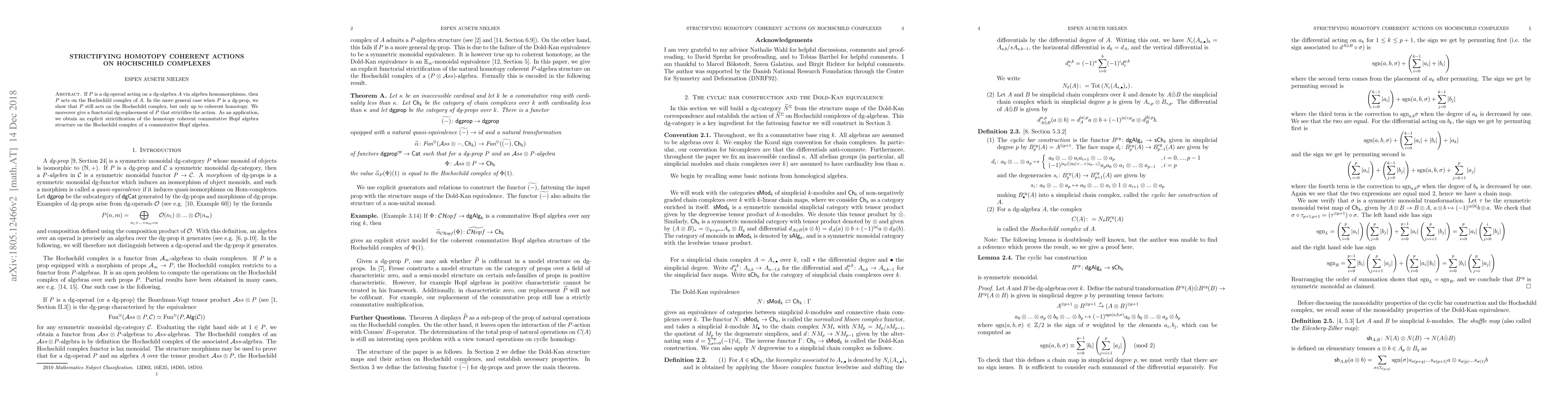 If P is a dg-operad acting on a dg-algebra A via algebra homomorphisms, then P acts on the Hochschild complex of A. In the more general case when P is a dg-prop, we show that P still acts on the Hochschild complex, but only up to coherent homotopy. We moreover give a functorial dg-replacement of P that strictifies the action. As an application, we obtain an explicit strictification of the homotopy coherent commutative Hopf algebra structure on the Hochschild complex of a commutative Hopf algebra.