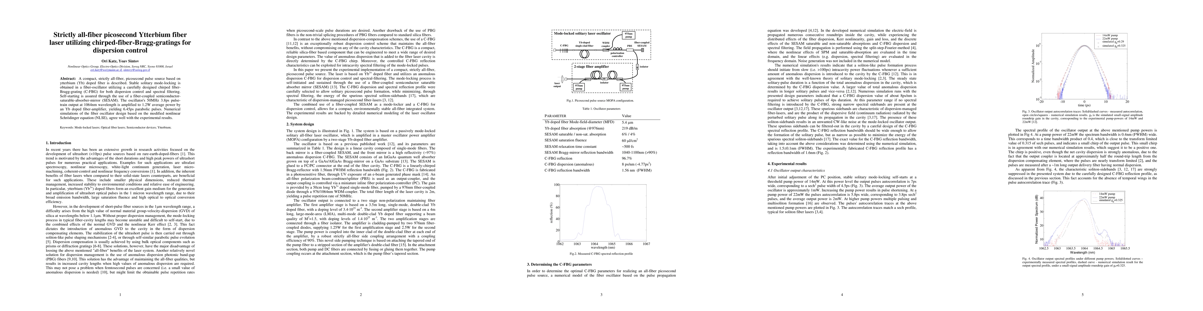 This paper presents a compact, all-fiber picosecond Ytterbium fiber laser utilizing chirped-fiber-Bragg-gratings for dispersion management and spectral filtering, achieving stable mode-locking and self-starting with a semiconductor-saturable-absorber-mirror, and demonstrating amplification to 1.2W average power.